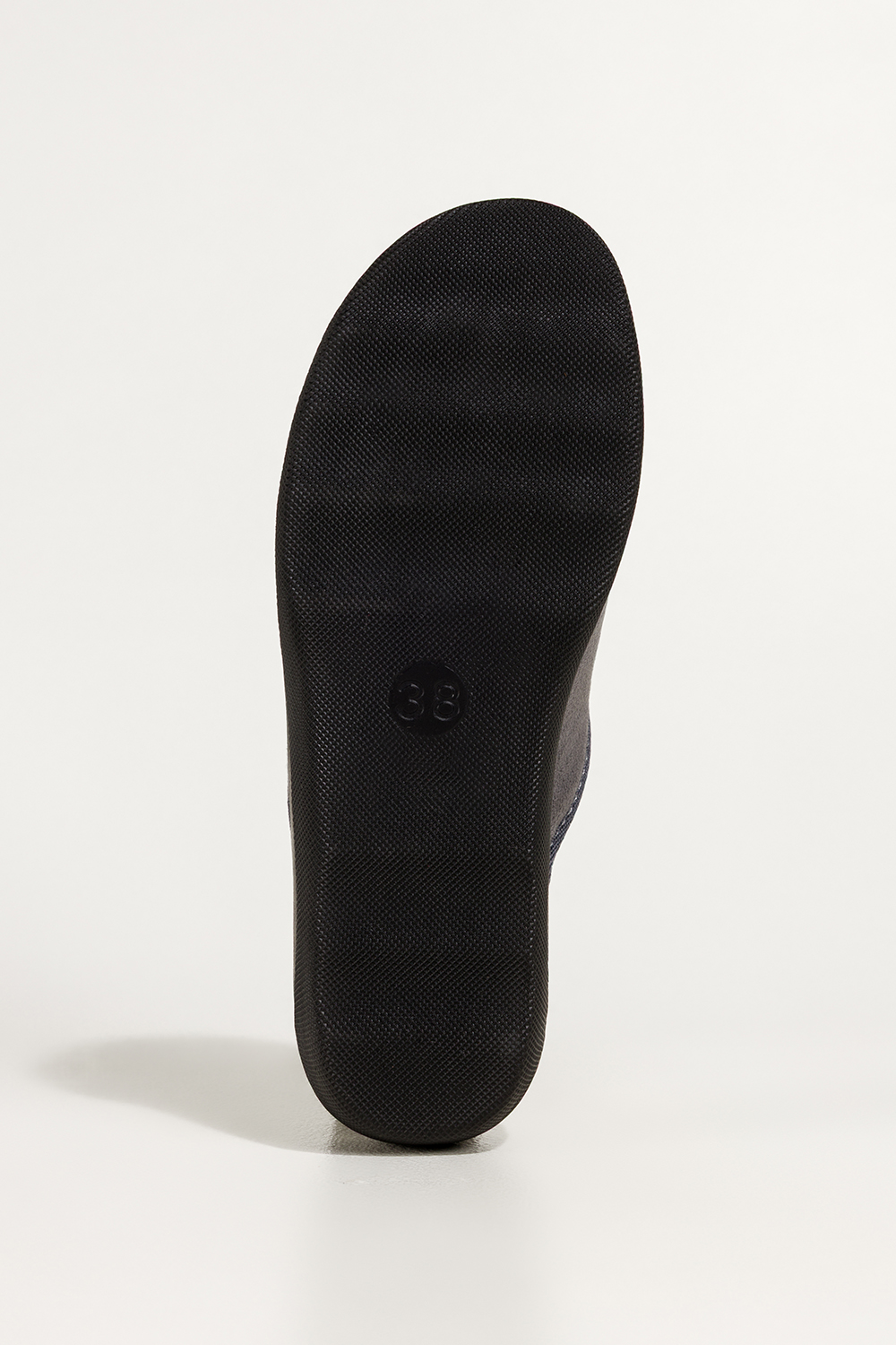 Granatowe kapcie damskie Inblu obuwie domowe z aplikacją psa skórzana wkładka soft XG999957