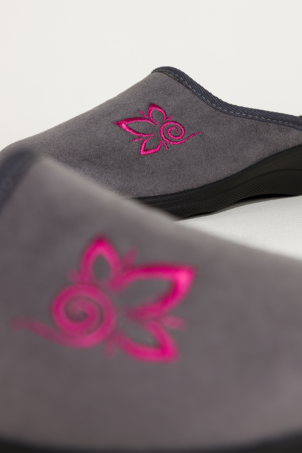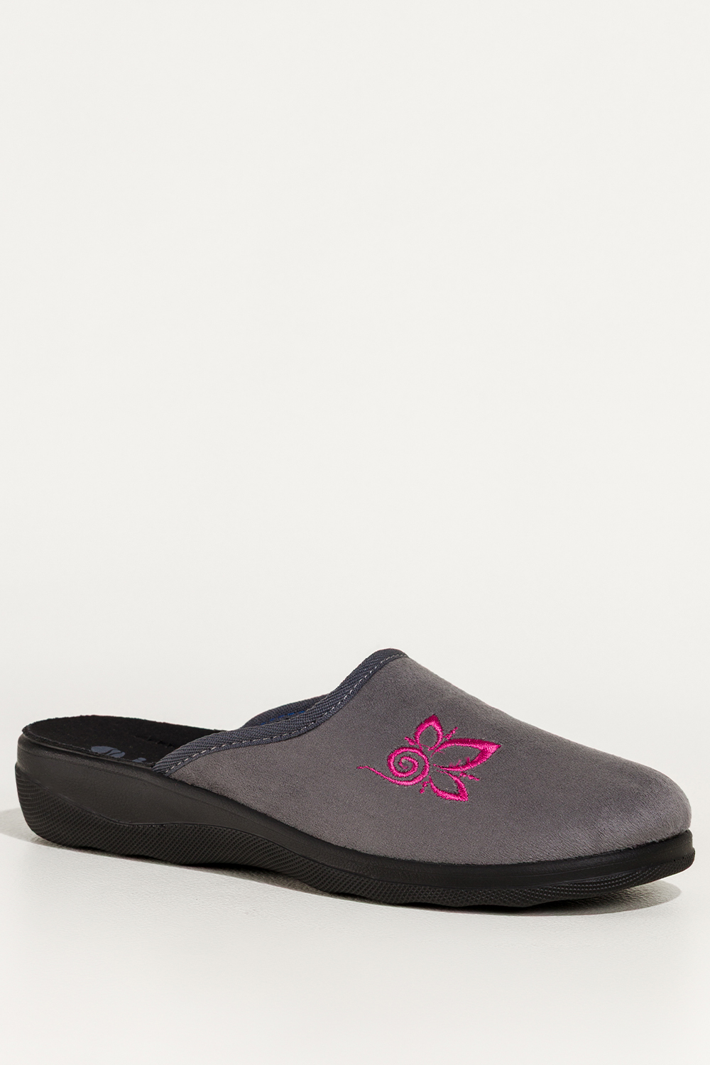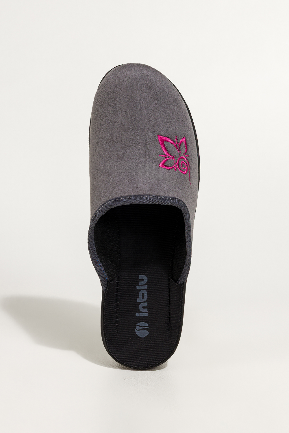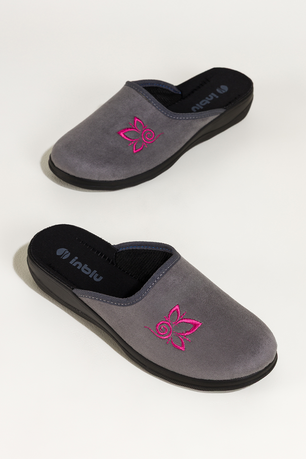 Szare kapcie damskie Inblu obuwie domowe z haftem XF99997W