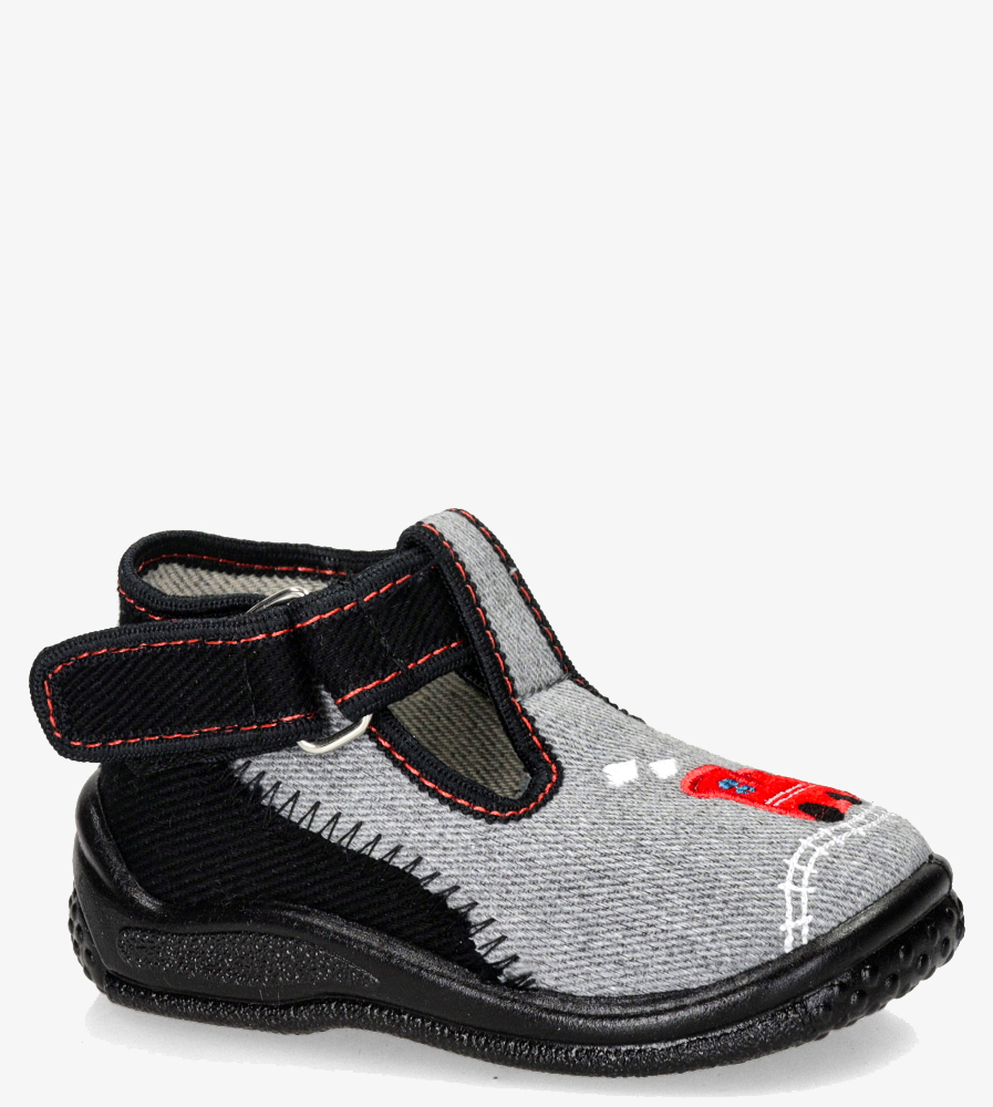 Szare kapcie Zetpol ze skórzaną wkładką Piotruś moro