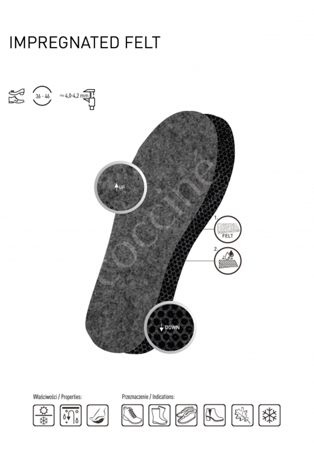 Termoizolacyjna wkładka filcowa Coccine Impregnated Felt do obuwia zimowego i roboczego