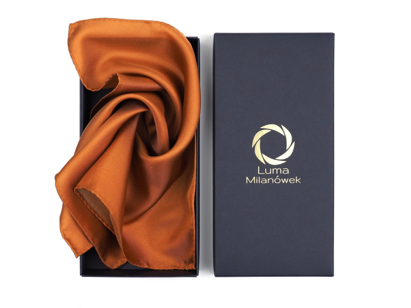 TWILL PJ-225 TWILL Karmelowa poszetka jedwabna obszyta ręcznie 30x30 cm