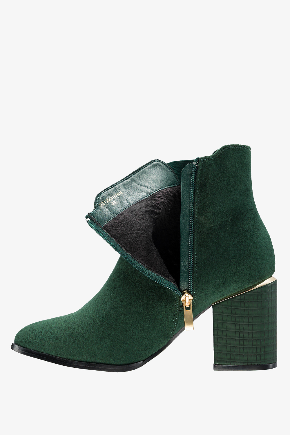 Zielone botki damskie z gumą na ozdobnym obcasie Casu D212X10-GN