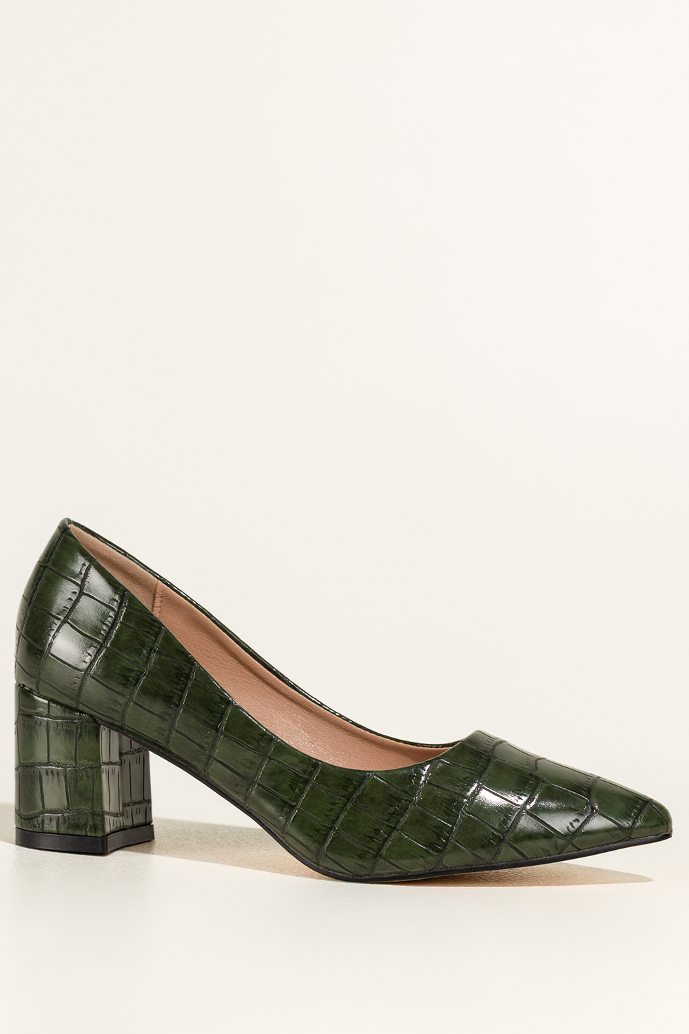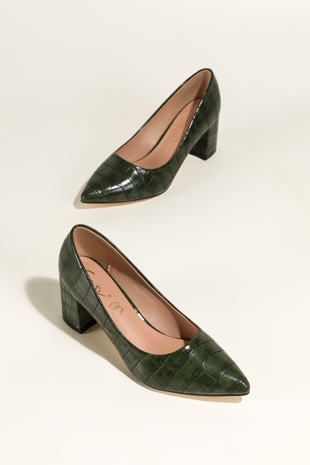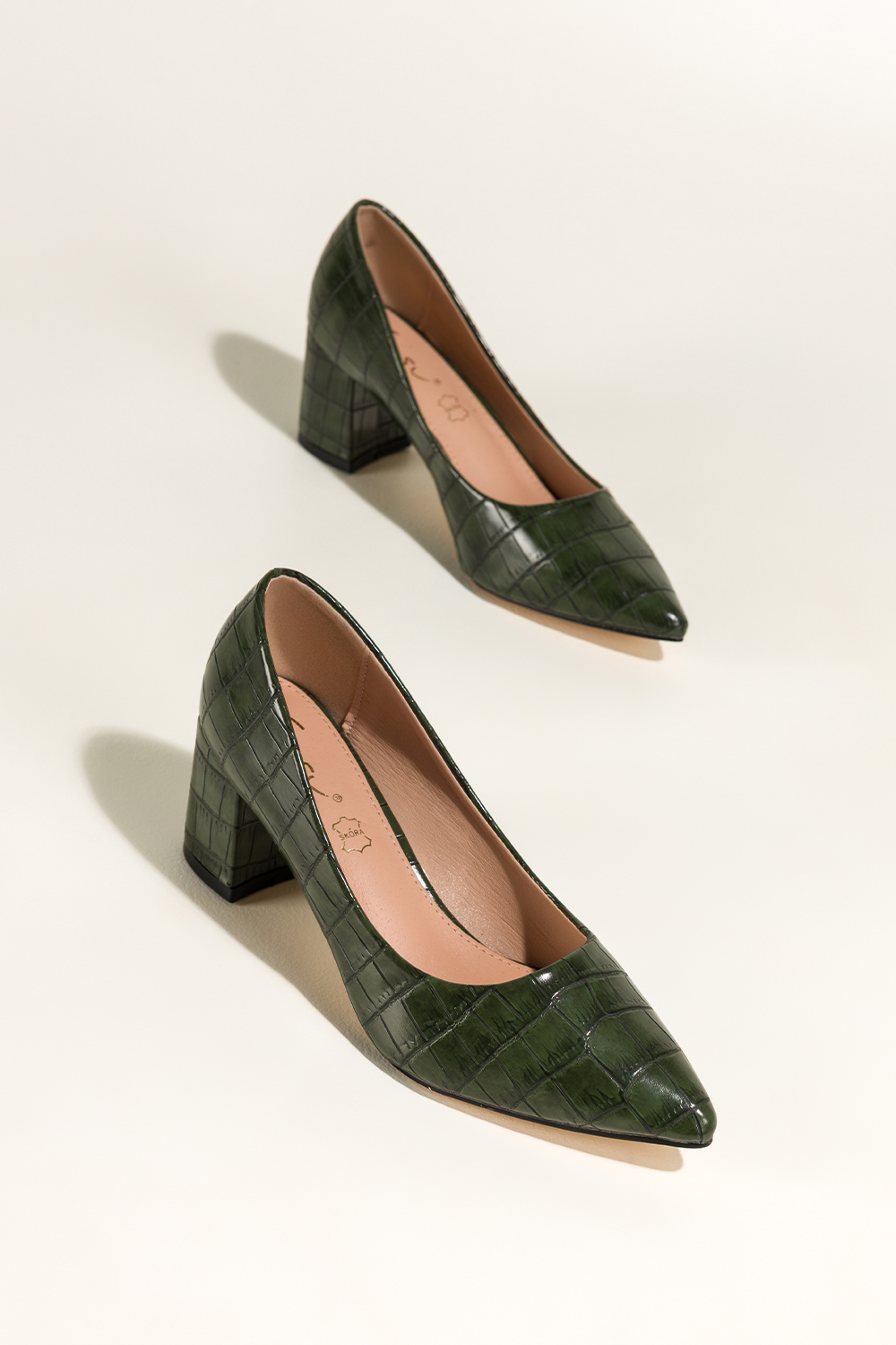 Zielone czółenka damskie na słupku krokodyli wzór skórzana wkładka Casu D25WX3-G