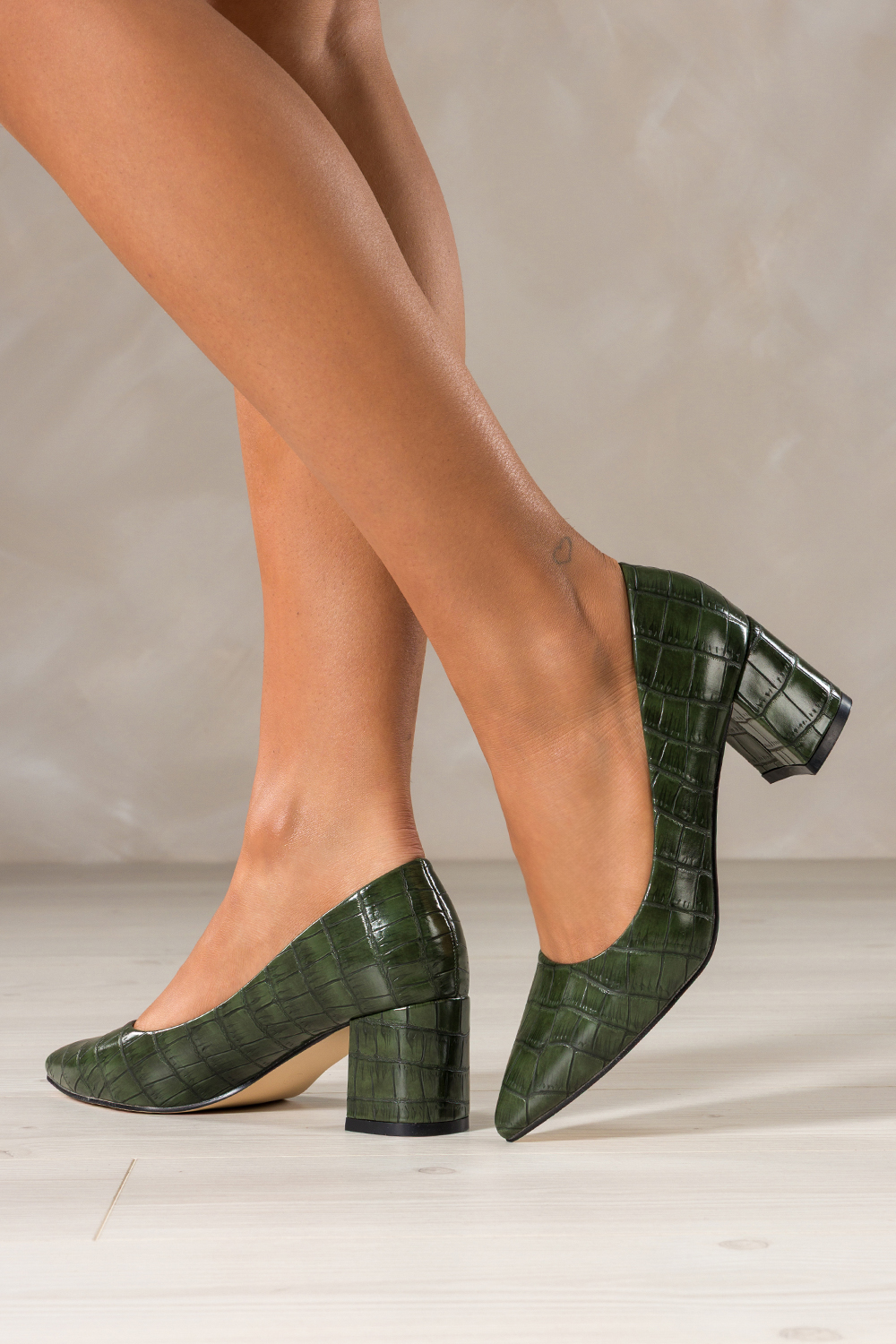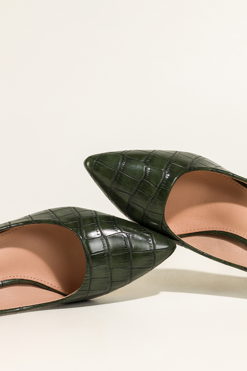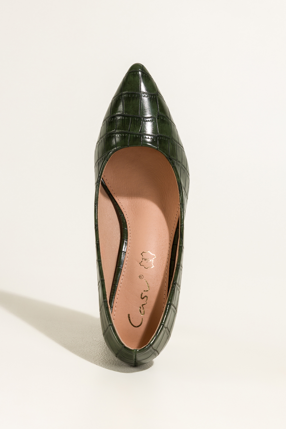 Zielone czółenka damskie na słupku krokodyli wzór skórzana wkładka Casu D25WX3-G