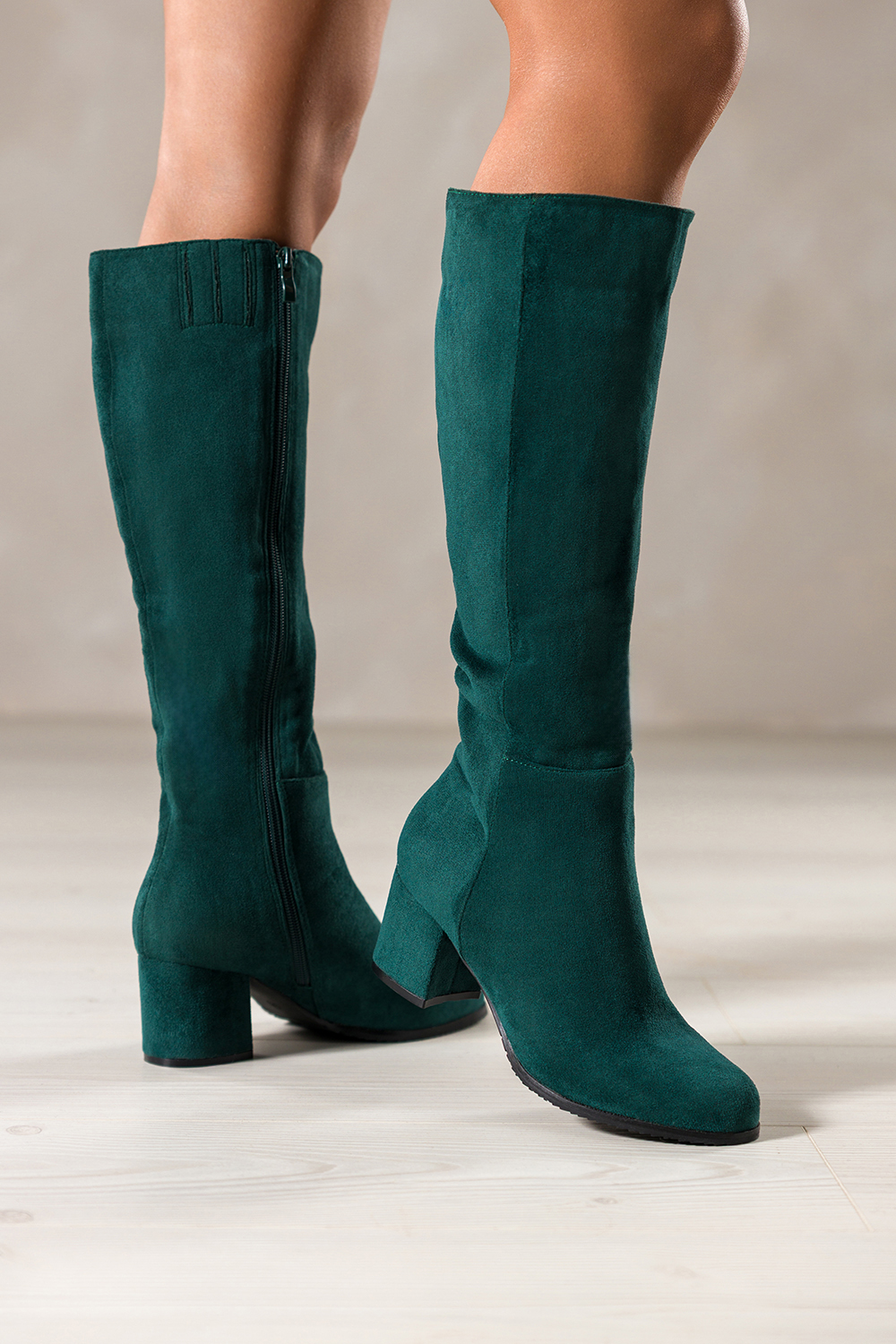 Zielone kozaki damskie przed kolano na słupku guma w cholewce Casu model D18X10-DG-N, połączenie wyrafinowanego stylu i najwyższej jakości wykonania. Wykonane z miękkiego, wysokogatunkowego zamszu ekologicznego, gwarantują trwałość i luksusowy wygląd, który przyciąga spojrzenia. Ich wnętrze zostało wykończone delikatnym futerkiem, które zapewnia przyjemne ciepło w chłodniejsze dni. Solidny, szeroki obcas typu słupek, pokryty zamszem, gwarantuje stabilność i komfort chodzenia przez cały dzień. Zamek po wewnetrznej stronie cholewki ułatwia zakładanie Te wyjątkowe kozaki to niezastąpiony element jesienno-zimowej garderoby każdej kobiety ceniącej modę i wygodę. Ich klasyczny, zaokrąglony nosek oraz długość przed kolano nadają im elegancji, która świetnie sprawdzi się zarówno w codziennych stylizacjach, jak i podczas wieczornych wyjść. Dzięki praktycznej gumie w cholewce dopasowują się do różnych typów nóg, co zwiększa komfort noszenia i podkreśla indywidualność każdej sylwetki. Kozaki zachwycają swoją uniwersalnością. Doskonale komponują się zarówno z jeansami, legginsami, jak i kobiecymi sukienkami. Ich głęboki zielony kolor stanowi modną alternatywę dla klasycznych barw, dodając stylizacji świeżości i charakteru. To idealne obuwie na chłodne dni, które łączy estetykę z funkcjonalnością, zapewniając komfort i pewność siebie w każdej sytuacji. Cechy wyróżniające Wysokiej jakości ekologiczny zamsz Ocieplenie z delikatnego futerka Stabilny słupek pokryty zamszem guma w cholewce, dopasowanie do każdej łydki Modny głęboki zielony kolor Klasyczna długość przed kolano To obuwie stworzone z myślą o kobietach, które chcą wyglądać stylowo, nie rezygnując z wygody. Zamów już dziś w sklepie Casu i ciesz się ponadczasowym stylem na co dzień!