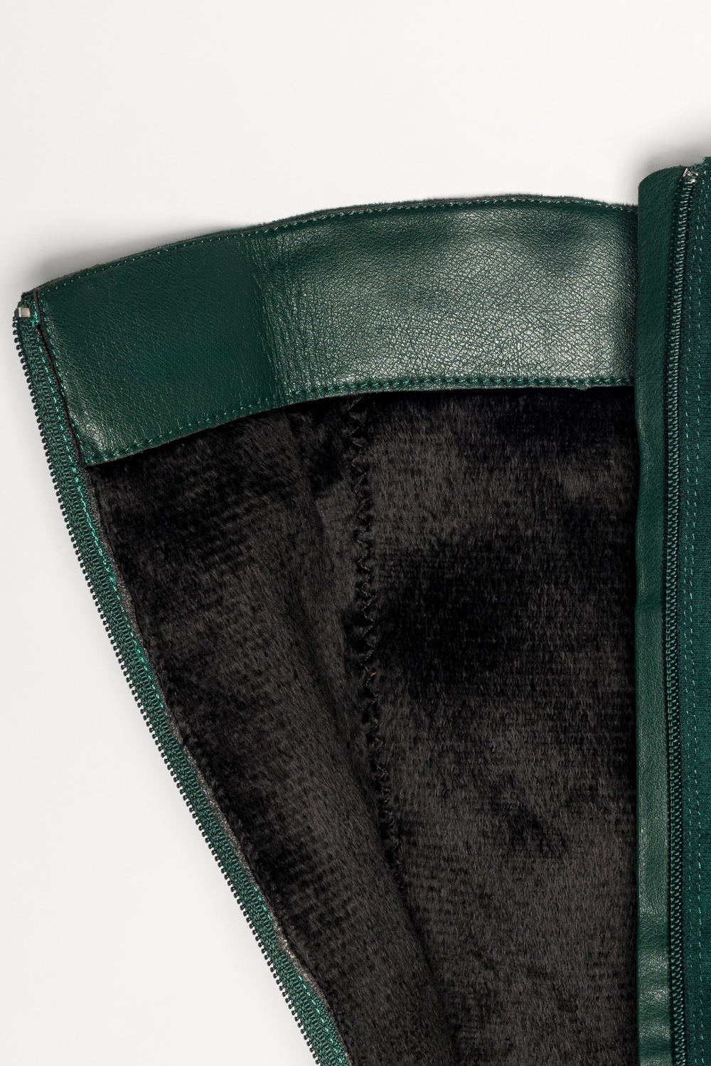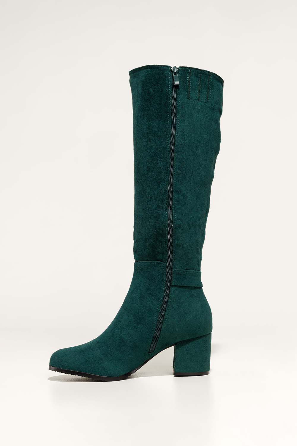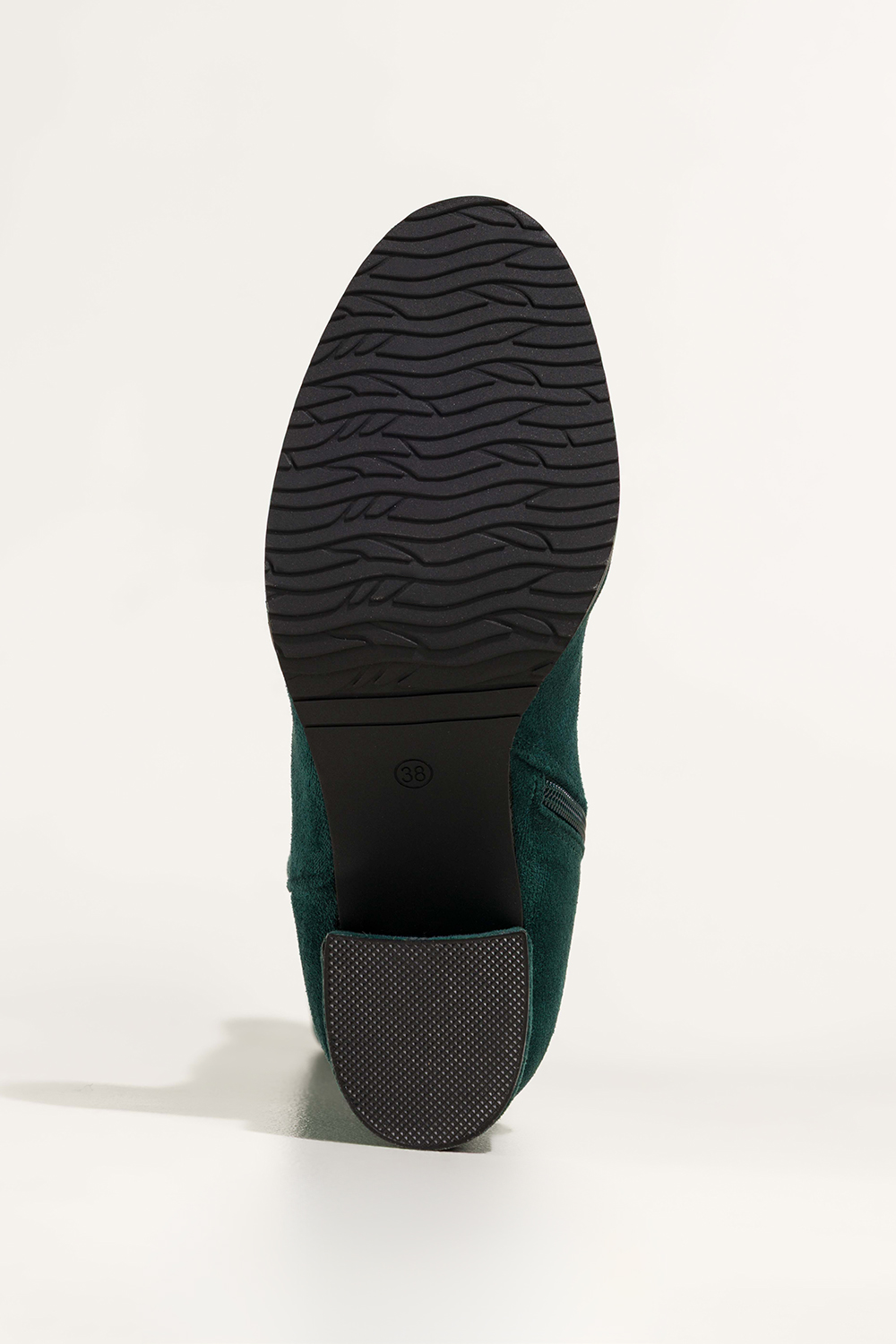 Zielone kozaki damskie przed kolano na szerokim słupku z ozdobą Casu model D19X14-G to synonim kobiecego szyku, wygody i niepowtarzalnego stylu. To nie są zwykłe kozaki -- to wyrazisty element garderoby, który łączy nowoczesny design z klasyczną formą, tworząc idealne obuwie na chłodniejsze dni. Wykonane z wysokogatunkowego zamszu ekologicznego, te eleganckie buty zostały zaprojektowane z myślą o kobietach ceniących komfort, trwałość i wyrafinowane detale. Model nie tylko przyciąga wzrok, ale także zapewnia ciepło, wygodę i pełną swobodę ruchów, niezależnie od tego, gdzie się wybierasz. Cholewka sięgająca przed kolano oraz ozdobny pasek ze stalową ozdobą dodają im modowego pazura, czyniąc z nich nieodzowny element każdej jesienno-zimowej stylizacji. Wysoka jakość wykonania i komfort noszenia to cechy, które wyróżniają kozaki na tle innych modeli dostępnych na rynku. Miękka w dotyku, a jednocześnie wytrzymała cholewka z ekologicznego zamszu stanowi doskonałą alternatywę dla skóry naturalnej -- jest przyjazna środowisku, a zarazem niezwykle estetyczna i trwała. Wnętrze buta zostało w całości ocieplone delikatnym futerkiem, co gwarantuje ciepło nawet w najchłodniejsze dni. Komfort zapewnia także miękka wkładka oraz stabilny, szeroki obcas typu słupek pokryty tym samym zamszowym materiałem, co całość. Dzięki takiemu połączeniu elegancji i wygody, możesz cieszyć się modnym wyglądem przez cały dzień, bez obawy o zmęczenie stóp. Stylowe uzupełnienie wielu stylizacji -- to kolejna zaleta tego modelu. Głęboka, butelkowa zieleń cholewki wpisuje się w najnowsze trendy i świetnie współgra zarówno z neutralnymi, jak i intensywnymi barwami ubrań. Model będzie idealnym dopełnieniem stylizacji do pracy, na spotkanie ze znajomymi czy na wieczorne wyjście. Zestaw je z wełnianym płaszczem, skórzaną spódnicą lub jeansami typu skinny, by uzyskać efektowny i kobiecy look. Dzięki obecności elastycznej gumy w górnej części cholewki, kozaki dopasowują się do kształtu łydki, co zapewnia nie tylko idealne przyleganie, ale i podkreślenie smukłości nóg. To buty, które nie tylko podnoszą komfort noszenia, ale również dodają pewności siebie każdej kobiecie. Funkcjonalność i detale, które robią różnicę czynią ten model wyjątkowym w swojej klasie. Kozaki zapinane są na praktyczny, boczny zamek, który ułatwia szybkie zakładanie i zdejmowanie. Ozdobny pasek ze stalową dekoracją przy kostce to niebanalny akcent, który przyciąga wzrok i dodaje charakteru. Zaokrąglony nosek zapewnia wygodę palcom, a jednocześnie zachowuje elegancką linię buta. Stabilność podczas chodzenia zwiększa szeroki obcas, który dzięki swojej konstrukcji doskonale rozkłada ciężar ciała, zapewniając większą równowagę. To idealny wybór dla kobiet, które nie chcą wybierać między wygodą a stylem -- tutaj mają jedno i drugie. Cechy wyróżniające: Wysokogatunkowy zamsz ekologiczny -- estetyczny i przyjazny środowisku Wnętrze ocieplane miękkim futerkiem -- idealne na zimniejsze dni Szeroki obcas typu słupek -- stabilność i komfort na co dzień Guma w górnej części cholewki -- lepsze dopasowanie do nogi Ozdobny pasek ze stalową klamrą -- subtelna elegancja Zapięcie na zamek -- wygoda i praktyczność Cholewka przed kolano -- modna długość pasująca do wielu stylizacji Uniwersalny kolor -- łatwe dopasowanie do garderoby Postaw na jakość, styl i komfort -- wybierz zielone kozaki damskie Casu D19X14-G i dodaj swojej jesienno-zimowej garderobie wyrazistości oraz elegancji. To nie tylko buty -- to inwestycja w Twój styl i dobre samopoczucie. Dzięki idealnemu połączeniu funkcjonalności i unikalnego wzornictwa, ten model będzie niezastąpionym towarzyszem codziennych i wyjątkowych chwil. Kup teraz na Casu. pl i przekonaj się, jak stylowe mogą być chłodne dni!