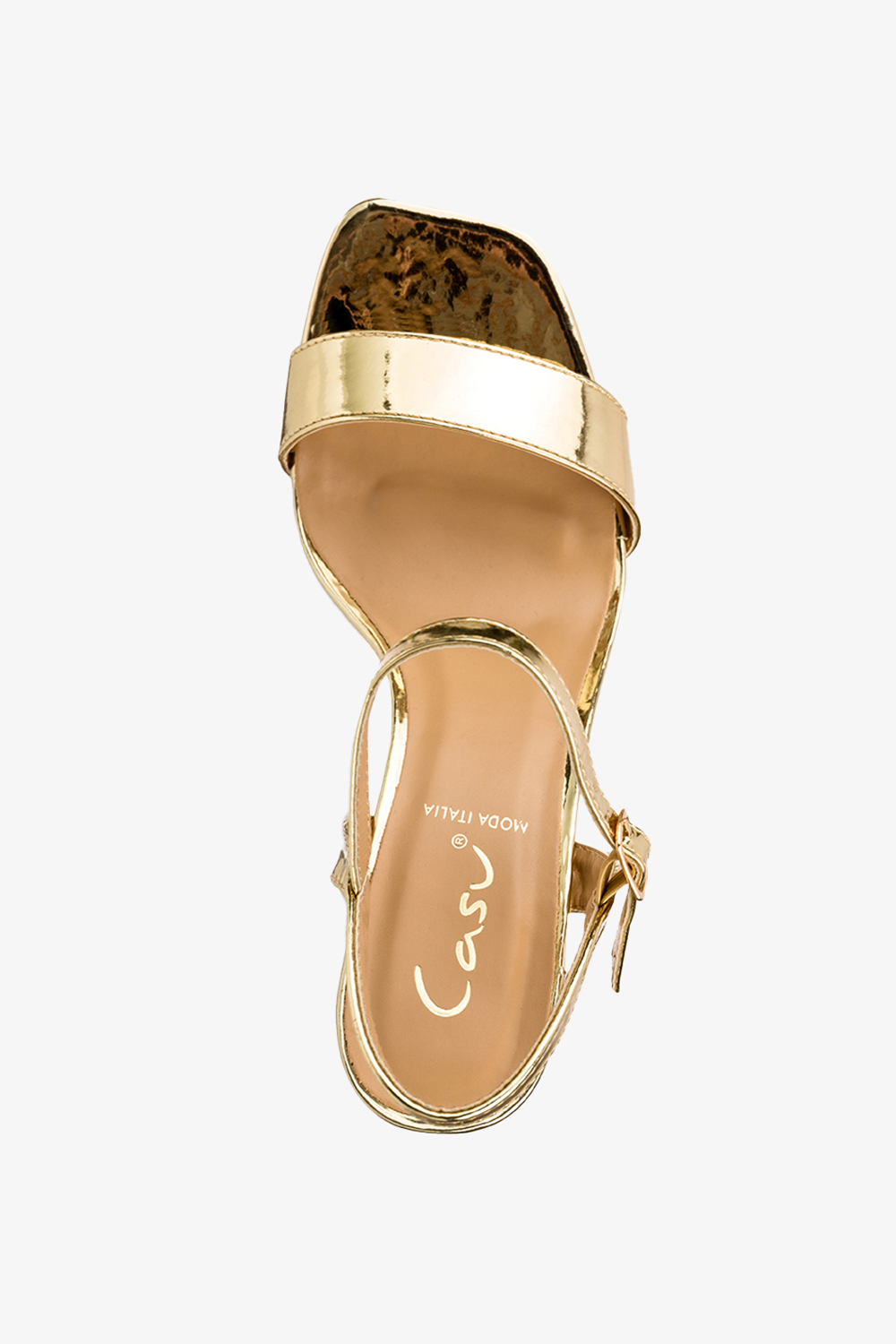 Złote sandały damskie model ER22X1-G-NO - elegancja i komfort na każdą okazję Złote sandały damskie model ER22X1-G-NO z Casu to idealny wybór dla kobiet ceniących sobie połączenie stylu, jakości i wygody. Wykonane z najwyższej jakości lakierowanej skóry ekologicznej, te buty wyróżniają się unikalnym designem i doskonałym dopasowaniem do stopy. Dzięki złotej, połyskującej barwie, model ten z łatwością stanie się kluczowym elementem każdej stylizacji - od eleganckich sukienek po wieczorowe kombinezony. Ich stabilny obcas oraz subtelne zdobienia czynią je must-have w garderobie każdej kobiety, która pragnie wyglądać olśniewająco, jednocześnie ciesząc się pełnym komfortem. Wysokiej jakości wykonanie i materiały premium Model został stworzony z dbałością o najdrobniejsze detale, by zapewnić użytkowniczkom najwyższy poziom satysfakcji. Głównym materiałem zastosowanym w produkcji jest lakierowana skóra ekologiczna, która charakteryzuje się trwałością, odpornością na uszkodzenia i eleganckim połyskiem. Solidny obcas w formie słupka został również pokryty tym samym materiałem, co dodaje spójności całemu projektowi. Otwarte noski i delikatny pasek przy kostce gwarantują nie tylko estetyczny wygląd, ale również komfort użytkowania - sandały świetnie dopasowują się do stopy, nie powodując otarć ani dyskomfortu, nawet podczas wielogodzinnego noszenia. Wszechstronność i styl w każdej sytuacji Złote sandały to synonim wszechstronności. Doskonale sprawdzą się na różnorodne okazje, takie jak karnawałowe bale, eleganckie przyjęcia czy romantyczne kolacje. Ich uniwersalny design pozwala na łatwe dopasowanie do wielu stylizacji: Świetnie komponują się z długimi, wieczorowymi sukniami, dodając stylizacji blasku i szyku. Idealne do eleganckich kombinezonów - złoty kolor podkreśli charakter stroju. W połączeniu z jeansami i prostą bluzką tworzą casualowy, ale zarazem elegancki look. Ich subtelny blask sprawia, że sandały przyciągają spojrzenia, jednocześnie nie dominując całej stylizacji. To buty, które pozwalają Ci zabłysnąć w każdej sytuacji. Cechy wyróżniające: Wysokogatunkowa lakierowana skóra ekologiczna o eleganckim połysku. Stabilny obcas w formie słupka - idealny na długie godziny noszenia. Otwarte noski eksponujące stopy w zmysłowy sposób. Praktyczny pasek przy kostce z regulowaną klamerką dla idealnego dopasowania. Uniwersalny złoty kolor pasujący do wielu stylizacji. Elegancja i komfort w jednym - dlaczego warto wybrać ten model Złote sandały to produkt, który łączy w sobie wszystko, czego oczekujesz od idealnych butów. Niezwykła jakość wykonania, wygoda użytkowania oraz elegancki design sprawiają, że są one niezastąpionym elementem garderoby. Jeśli poszukujesz obuwia, które podkreśli Twój styl i zapewni Ci komfort podczas każdej okazji, te sandały będą strzałem w dziesiątkę. Postaw na model, który wyróżni Cię z tłumu i pozwoli czuć się pewnie oraz wyjątkowo, niezależnie od sytuacji. Nie czekaj - wybierz złote sandały lakierowane z Casu już dziś i poczuj magię elegancji na swoich stopach!
