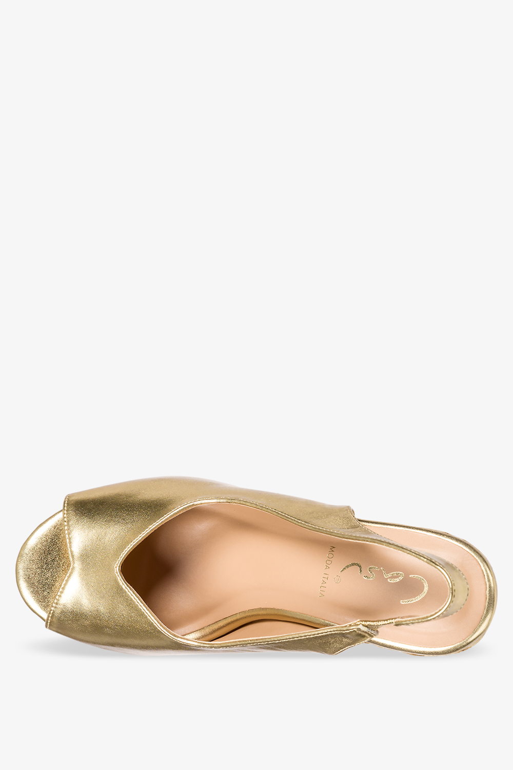 Złote sandały damskie Sergio Leone na ozdobnym koturnie skórzana wkładka SK204-CA