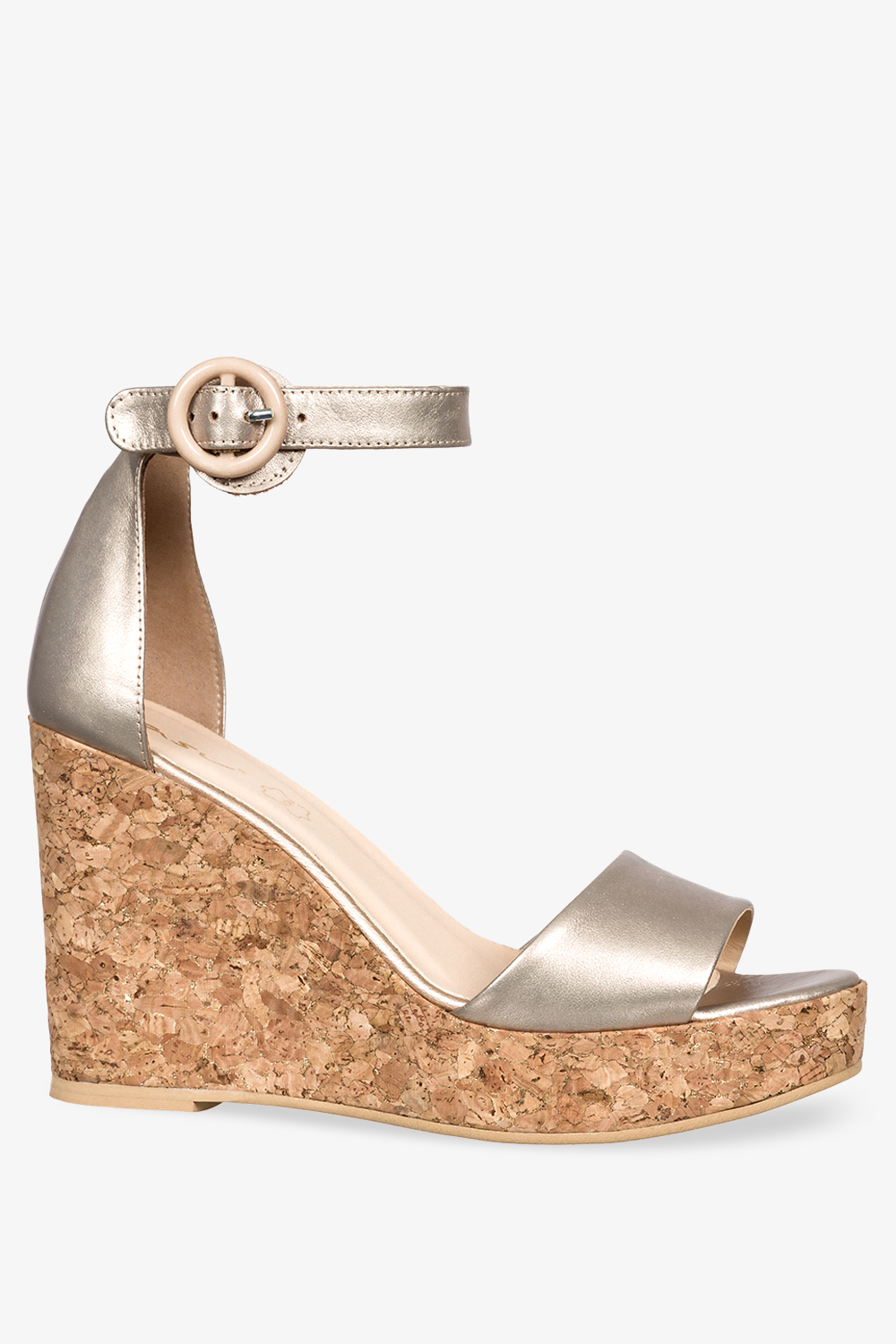 Złote sandały skórzane damskie na koturnie z zakrytą piętą pasek wokół kostki PRODUKT POLSKI Casu 2